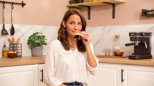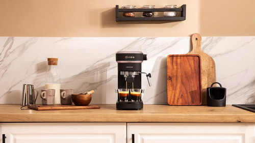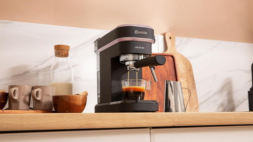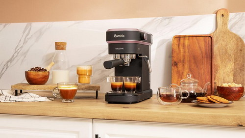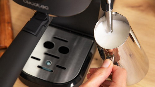 Cafetera express para espressos y cappuccino, dispone de sistema de rápido calentamiento por thermoblock, 20 bares, Modo Auto para 1 y 2 cafés, vaporizador orientable y conducto de agua para infusiones.