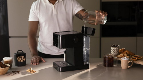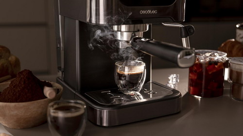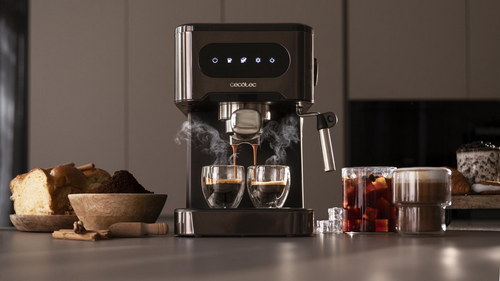 Cafetera express para café espresso y cappuccino, café en frío, con 20 bares y vaporizador orientable.