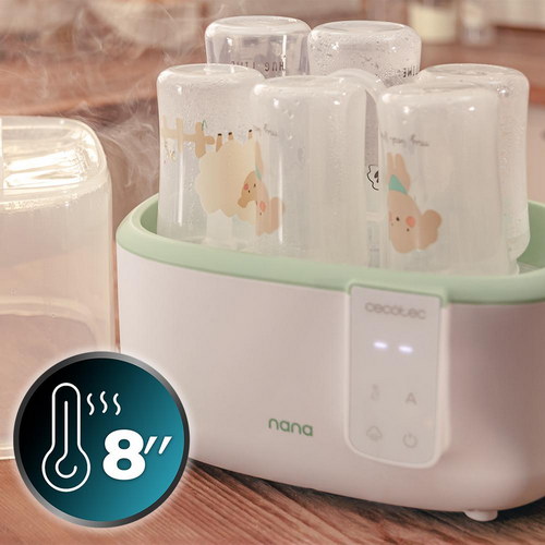 Esterilizador digital para hasta 6 biberones, con soporte de tetinas, 8 minutos de esterilizado y libre de BPA, seguro para almacenar agua, leche y alimentos.