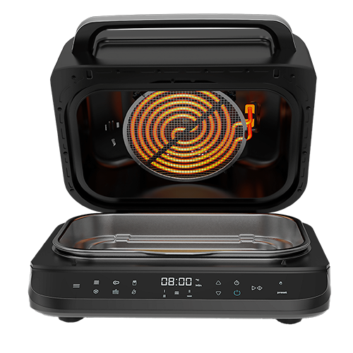 Freidora de aire grill de 2400 W, 6 modos de cocción y 4 niveles de grill.