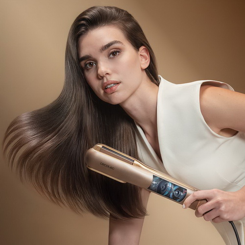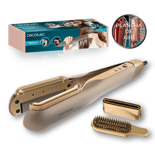 Plancha de aire con flujo de aire potente 19,7 l/s, cabezales imantados, para todo tipo de cabellos, función plasma, motor brushless, 4 temperaturas y 2 velocidades de aire.