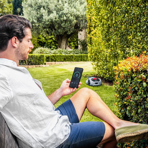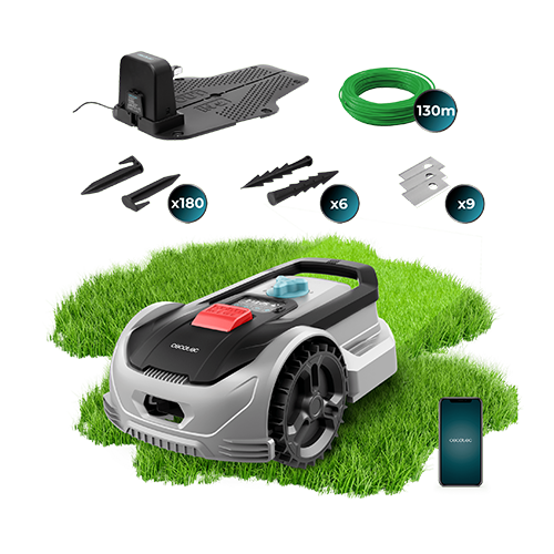 Motor Digital Brushless. Para superficies de hasta 500 m2. Pendiente máxima de 27%. Regulador de las hojas de corte. Sensor detector de lluvia. Control APP.