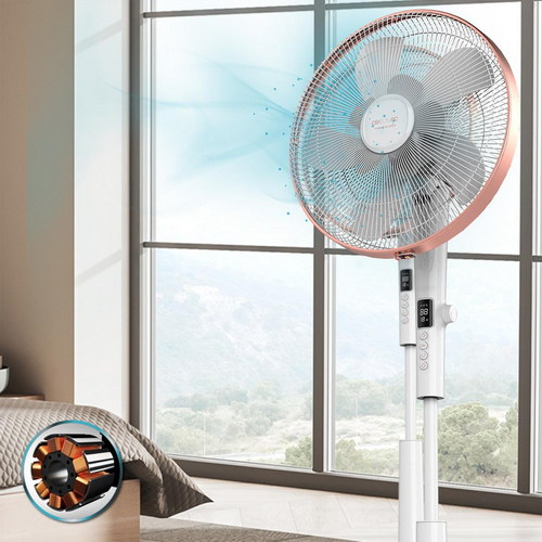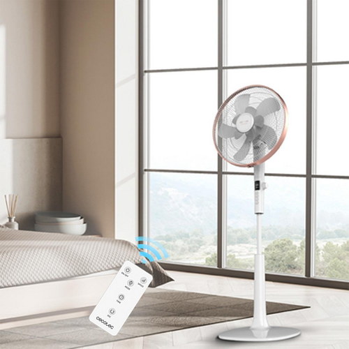 Ventilador de Pie con Mando a Distancia y Temporizador, 28 W, 10 Aspas 40cm de Diámetro, Oscilante, 24 Velocidades, Ajustable 115-135cm, Motor DC, Blanco