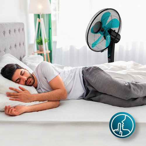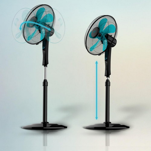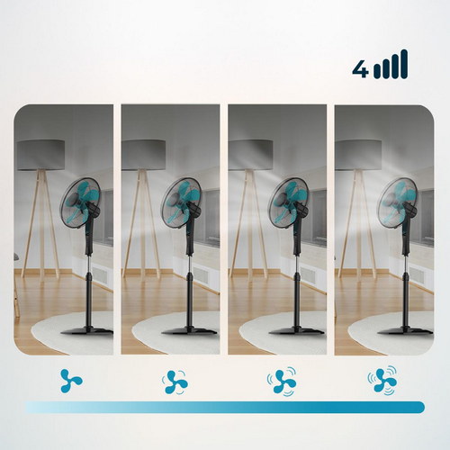 Ventilador de Pie con Temporizador, 50 W, 5 Aspas 40 cm de Diámetro, Oscilante, 4 Velocidades, Ajustable 110-130 cm, Motor de Cobre, Negro