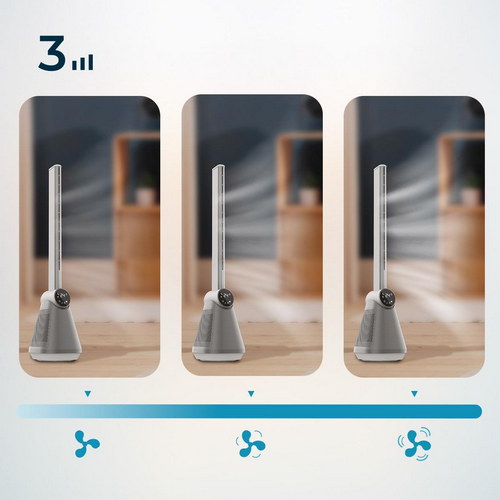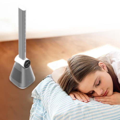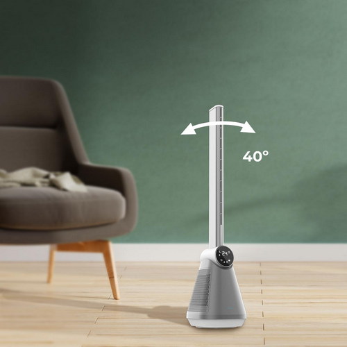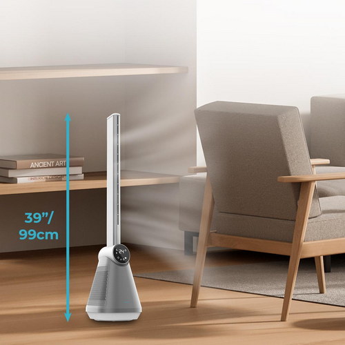 Ventilador de torre sin aspas de 39″ con 50W, LED display, control táctil y remoto, temporizador 15 horas y oscilación.
